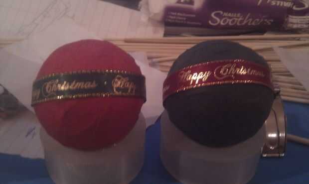 Ahora has encontrado tu fantasía de la cinta de su tiempo para que usted consiga son elfos en línea. Elf #1 tiene que usar un pequeño spot UHU u otros tan roquillas sujetar su cinta a la chuchería y envuélvalo alrededor. Mientras que él mantiene su tiempo para hacer su jinlge de chucherías.