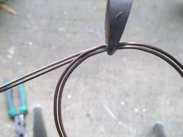 Una cosa a tener en cuenta es que a veces los dos cables no quieren permanecer juntos y uno se doblará hacia arriba y el otro se doblará hacia abajo. Si esto sucede, toma los dos hilos y doble en la misma forma pero a la vez en lugar de ambos al mismo tiempo. Esto permitirá mayor control sobre la llanura de la ornamentación.