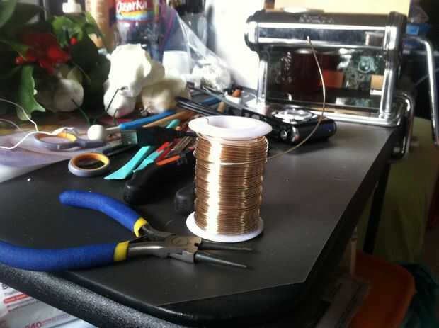 Alambre - para crear colgantes pins para adornos. De Joanne. Hubiera funcionado mejor un perno del ojo pero no tener ninguna a mano.