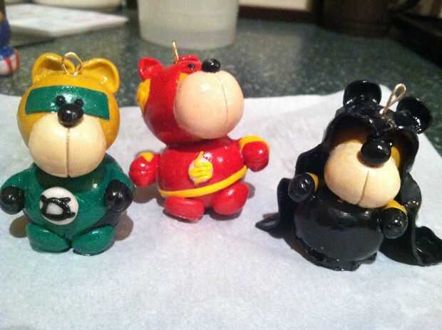 Fimo arcilla del polímero - usé blanco, tan/marrón, verde, fluorescentes (por resplandor en el efecto oscuro), rojo, transparente amarillo, negro y varios otros colores. De Joanne (en venta por $1 cada uno)