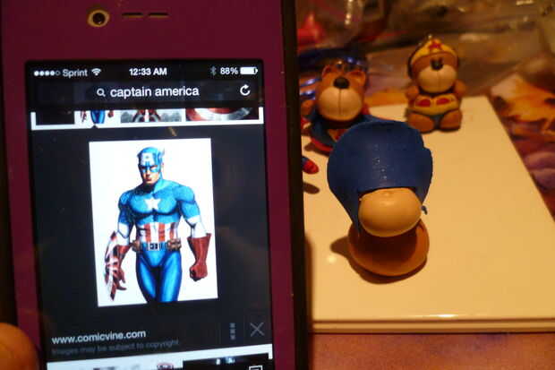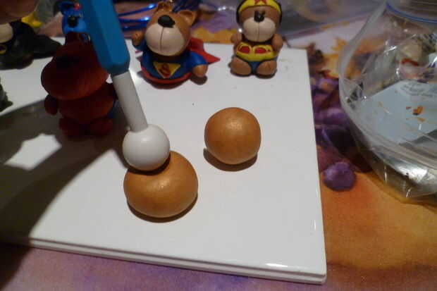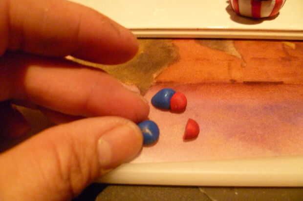 Tomar pequeños trozos de arcilla azul y cubrir toda la cabeza. Alisa la arcilla con los pulgares.