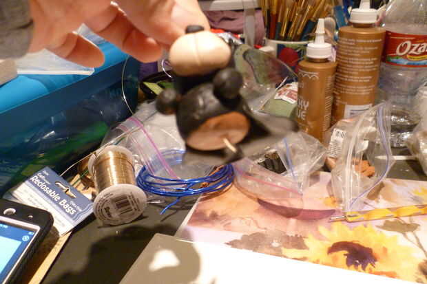 Tomar un trozo de alambre y crear un bucle en un extremo (si no tienes un perno del ojo). Inserte el cable a través de todo el cuerpo y doblar la punta en el bototm del cuerpo (por lo que el cable no sale hacia afuera).