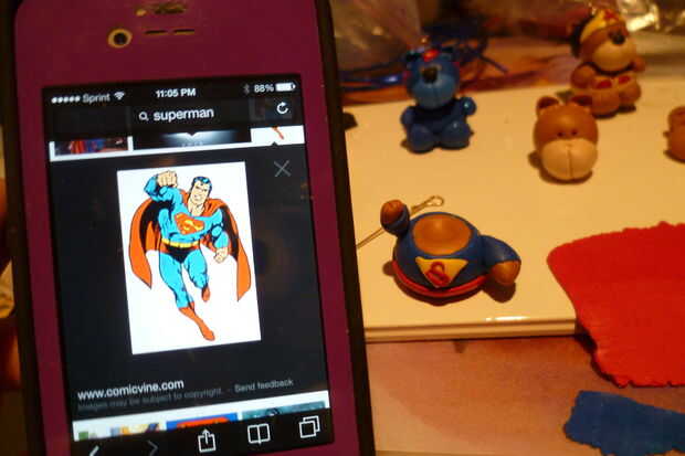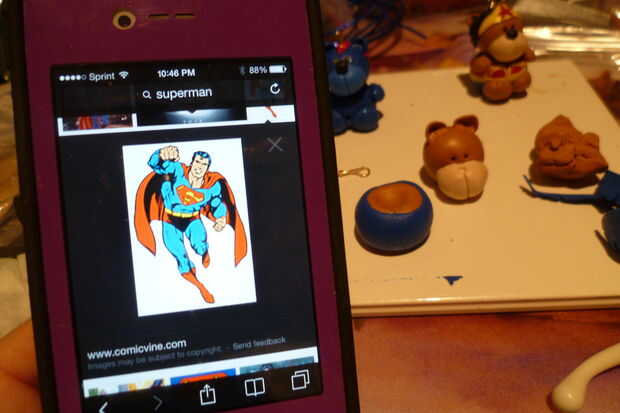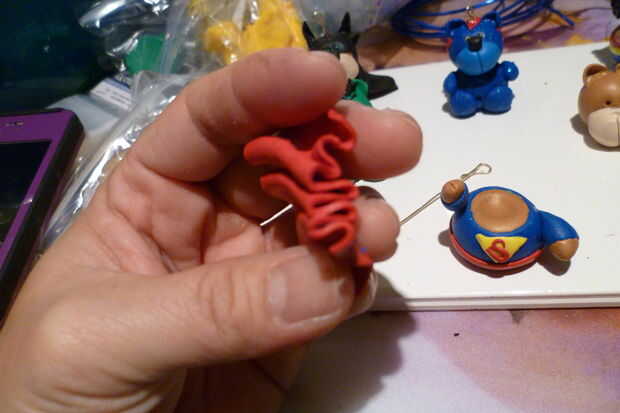 Cortar una pieza rectangular más grande de arcilla roja para crear la capa. Plisado de los extremos de una parte del cabo (ver imagen) y añadir al cuerpo.
