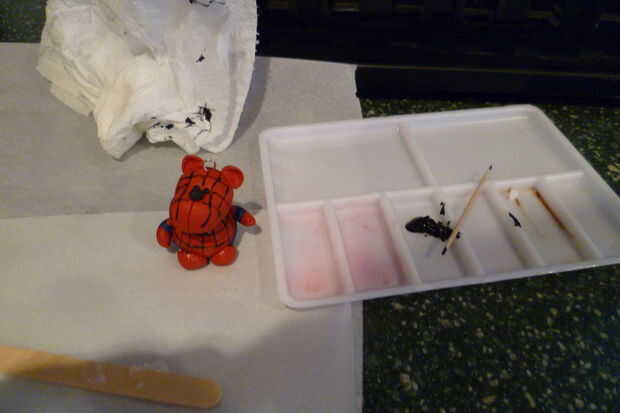 Tomando un cuchillo del exacto, corte las líneas de la 'web' en la cabeza y el cuerpo. Estos pintarán en después con pintura acrílica negra después de la cocción.