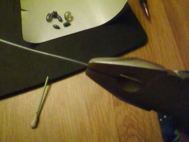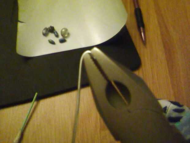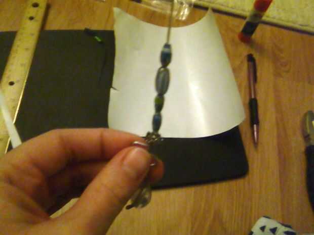 Después el grano, sea creativo! Torcer, doblar o arruga lo que atrapa su fantasía con el alambre. Después sobre una pulgada o dos, añadir más cuentas. Normalmente utilizo tres bolas de papel y un par de perlas de vidrio con un metal de uno tirado. Entonces es volver a conseguir funky con el alambre.