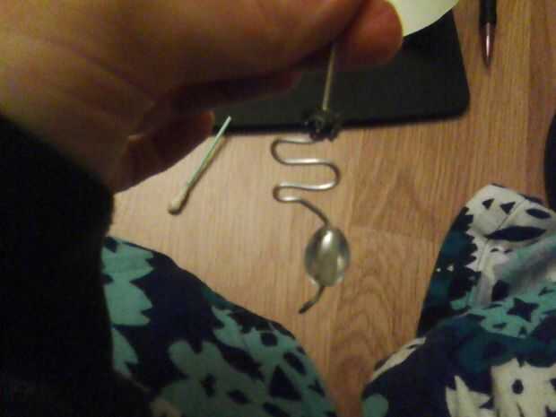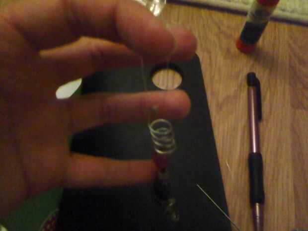 Dependiendo de lo que hiciste con el alambre en la parte superior del ornamento, hacer otra curva de 180 grados en el cable para darte un lugar al que se ata el sedal.  Puedes ver algunos ejemplos en las fotos donde no tienes que hacer este paso.