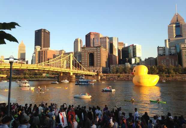 En el otoño de 2013, había un patito de goma gigante flotando en los ríos de Pittsburgh, Pennsylvania. Fue gran noticia.