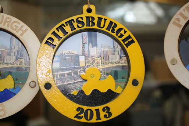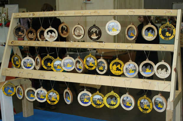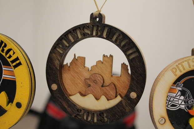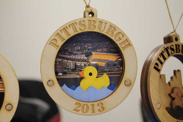 Al tiempo, enseñaba una clase de tienda de la high School secundaria. Decidimos hacer ornamentos de fiesta conmemorando el año que del pato llegó a Pittsburgh. Hicimos un montón para la venta en una nave de feria para recaudar fondos para la tienda, luego adornos de los estudiantes para mantener por sí mismos.