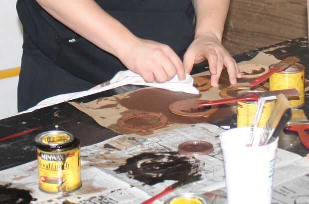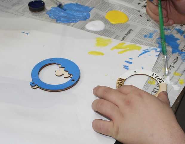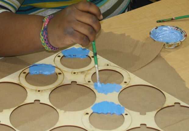 Para agregar color, estudiantes utilizaron pintura acrílica, tinta para madera y marcadores. El diseño capas de nuestros adornos pintura y coloración muy fácil - en su mayor parte cada capa sólo tuvo un color. También fue divertido mezclar y combinar las capas antes de encontrar las combinaciones que mejor.