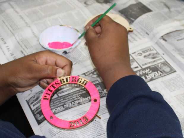Algunos de los ornamentos tenían el horizonte de Pittsburgh en la capa trasera, otros tenían una capa completa trasera con la imagen de la ciudad o en uno de los estadios. Las imágenes fueron impresas en cartulina, recortar con tijeras y pegamento-sticked en la capa trasera antes del montaje.