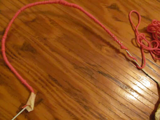 Empezar a envolver el hilo alrededor del alambre. Al llegar a las zonas con cinta, simplemente Envuelva el hilo derecho sobre ellos y seguir adelante. Haga otro nudo donde termine de envolver.