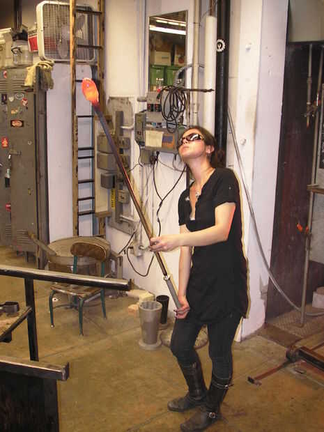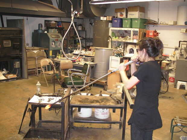 Para practicar soplar en el tubo de soplado obstruido, sostenga el tubo con una mano cerca del extremo opuesto de donde el vidrio es recogido, de manera que usted podrá poner su pulgar sobre el extremo para atrapar el aire en el interior cuando se necesita hacer. Coloque la otra mano hasta la mitad el tubo de apoyo (esta mano se utilizará para girar el tubo mientras que usted está soplando).