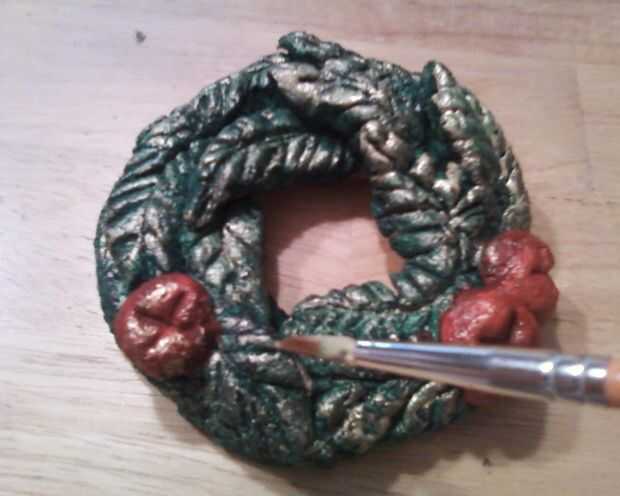 Tome el cepillo y cepíllelo ligeramente sobre la superficie dorado todos los golpes y texturas de la ornamentación.