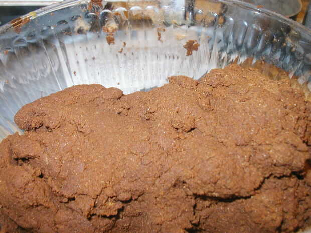 Mezclar bien con la cuchara de madera. Puede que necesite utilizar las manos. Si la mezcla es demasiado seco para unir, añadir unas gotas de extracto de naranja. Buscas la mezcla a ser arcillosos.