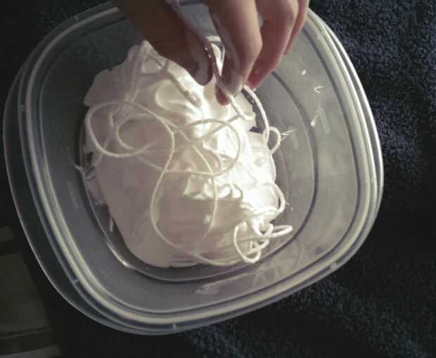 En un balde Vierta la cantidad de pegamento que va a usar y añadir la cadena en el cubo.