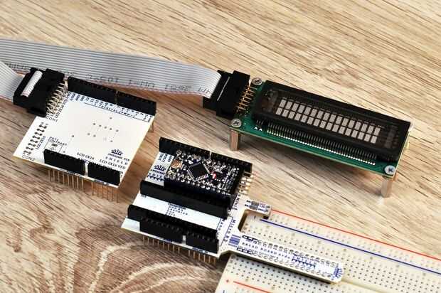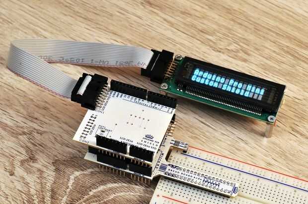 Segundo ejemplo es el escudo personalizado para 2 × 16 LED pantalla coche por Arduino Mini Pro mediante ArduShield.