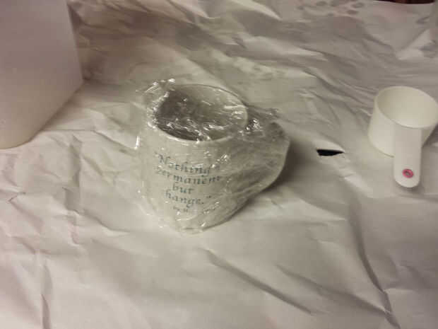 Envolver el objeto en envoltura de plástico. Esto protegerá de poliuretano mientras es curado y también hacer más fácil de quitar una vez que se encuentra.