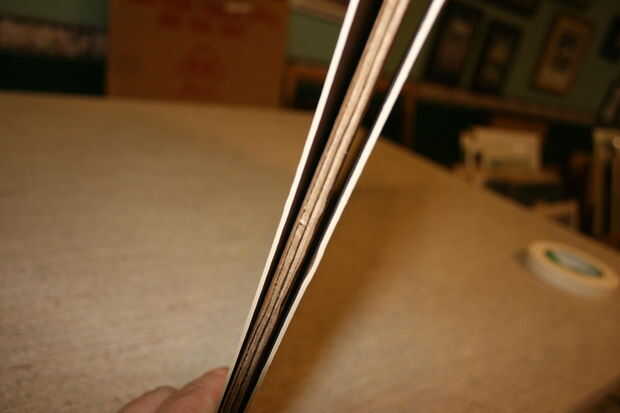 El cartón entre las dos piezas de matbord Asegúrese de que la parte coloreada de la matboards contra la forma de emparedado. Cubrir las esquinas y los lados con cinta adhesiva y listo!