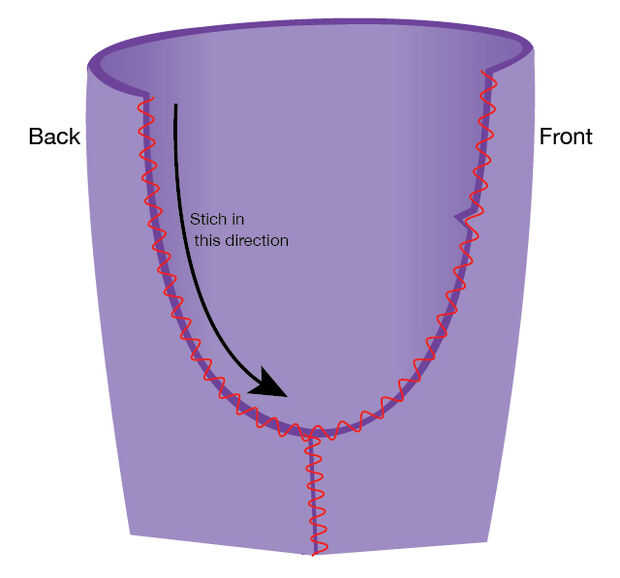 Inserte el lado derecho hacia fuera pierna en la pierna de adentro hacia afuera, coincidir todos los bordes de ambas piezas y la clavija en lugar. A partir donde el cuello confluye en la espalda, coser la costura central de la tapa, todo el camino hasta la parte posterior y alrededor de la entrepierna, unos 6-8 pulgadas (15-20 cm) pasado encuentro la entrepierna. Esto va a ser donde se encuentra con la parte inferior de la cremallera y se puede ajustar para que coincida con la longitud de la cremallera más tarde. Tire una pierna de la otra y dejar el ropa al revés.