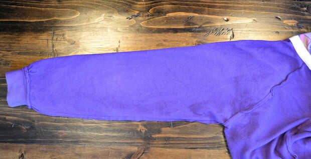 Doble los puños en mitad del camino largo con el lado derecho de la tela hacia fuera. Unir los extremos y coser el borde. Voltear la costura quede en el interior del manguito. Inserto en la muñeca del brazo del pedazo, borde doblado en primer lugar, así los 2 bordes ásperos del manguito doblado cubrir el borde de la pieza del brazo. Costura del manguito debe también reunirse con la costura bajo el brazo. Prender y coser alrededor de la muñeca.