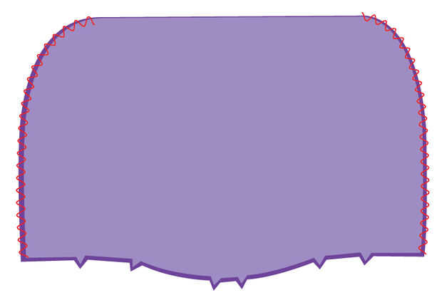 Primero inserte acabado campana en el cuello de la prenda, superior. Emparejar los bordes, asegurándose de que los bordes frontales y posterior costura coinciden con los de la prenda. Prender y coser alrededor del cuello. Las esquinas de la parte inferior delantera de la campana se pliegan ligeramente cuando añades la cremallera.