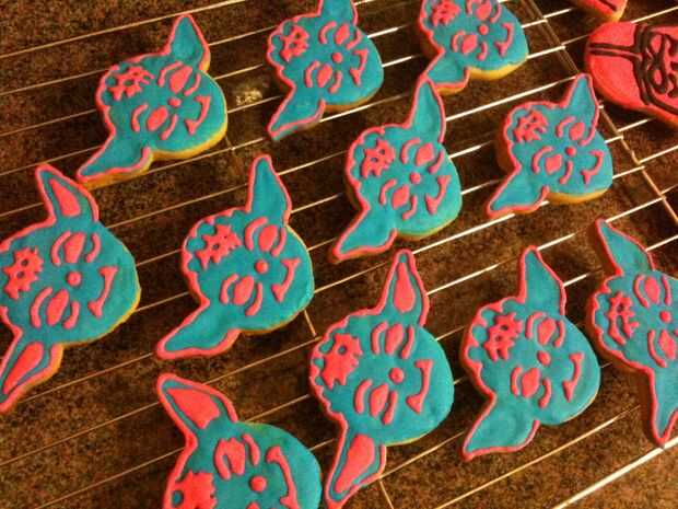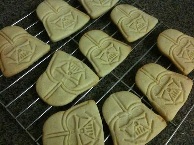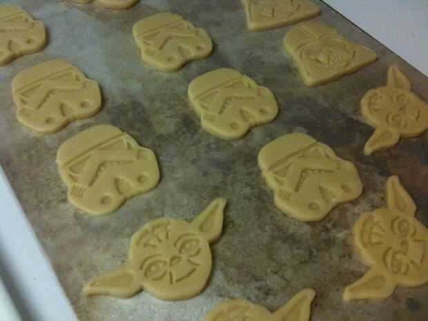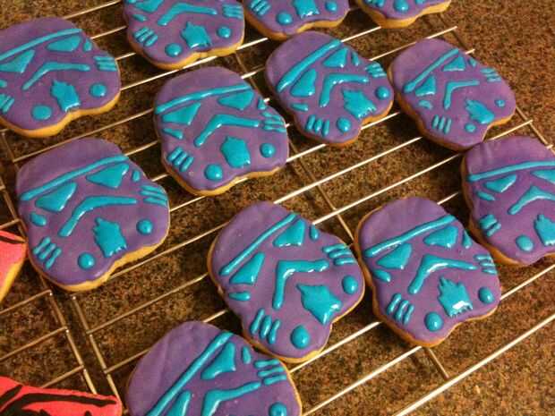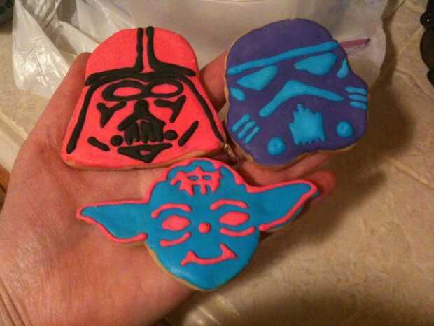 ENCANTARON, eran adorables, y hacía mis propios, utilizando los colores que yo quería. Sólo seguí la receta que viene con los cortadores de la galleta del conjunto cortador de galletas de Star Wars de Williams Sonoma y todo salió perfectamente. Mi mamá incluso le gustaba las galletas, y ella nunca paga Felicitaciones!