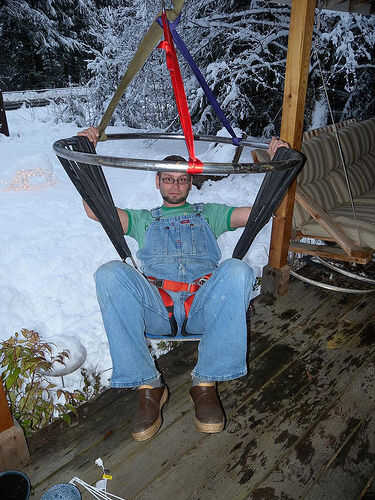 Pude girar mis caderas de lado a lado, rebote con mis piernas, y atrás de la roca y otra manera conseguir jiggy sin tener que apoyar mi peso en mis piernas. Con el arnés que utiliza, algunos equilibrio o fuerza del cuerpo superior sería mejor pero con "tres puntos" o arnés de cuerpo entero y un poco más jarcias, también sería muy útil.