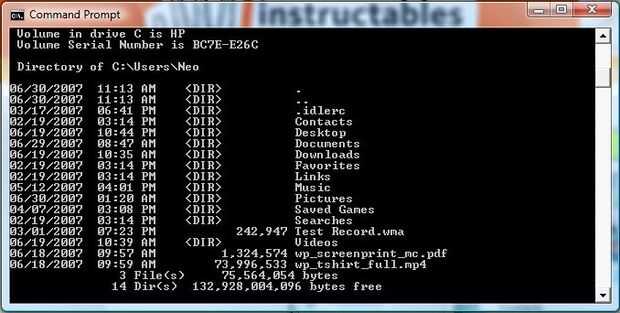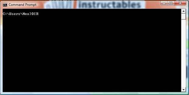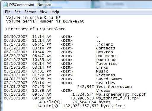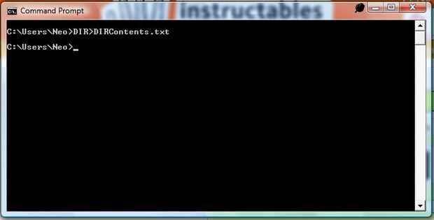 OK, así que vamos a decir que estamos en un cierto directorio. Luego utilizamos el comando DIR, que, si usted lee los conceptos básicos de lote, sabes como mostrar el contenido del directorio actual.