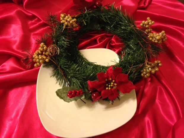 esto es una pequeña corona que quedará bien con sus decoraciones de la Navidad:-). Se hace sobre todo de conectores verdes y blanco Cañas, además de "frutos rojos" y una cinta roja en la parte inferior. También se incluyen algunas luces falsas.