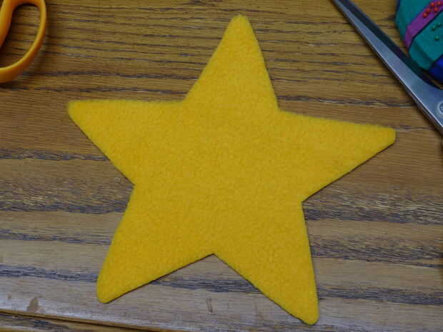 Prestado un trozo pequeño de lana amarilla (sólo necesitas un cuadrado de 8 pulgadas) y remontar hacia fuera la estrella patrón en él.
