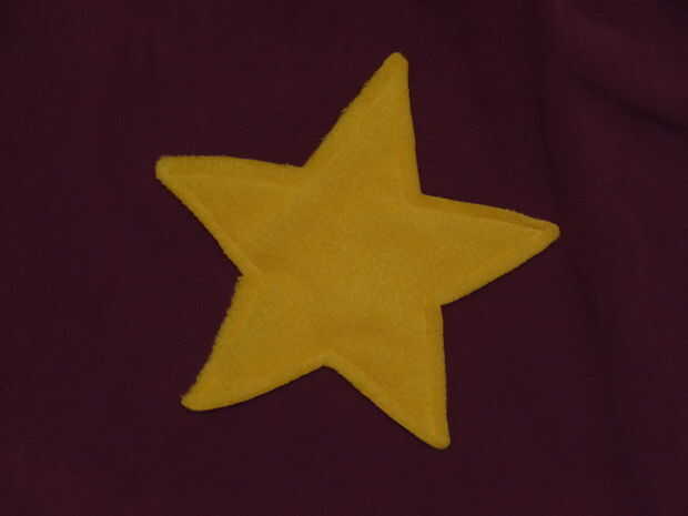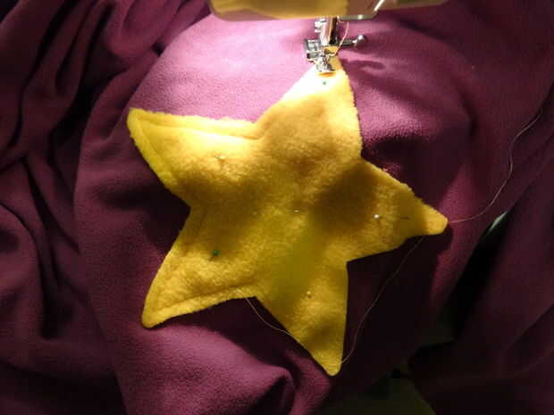 Corte hacia fuera y pin en el manto en posición a su gusto. Traté de mina en con la estrella en el lugar, sólo para estar seguro fue en un buen lugar. Usé mi máquina para coser la estrella, pero potencialmente podría hacerlo a mano.