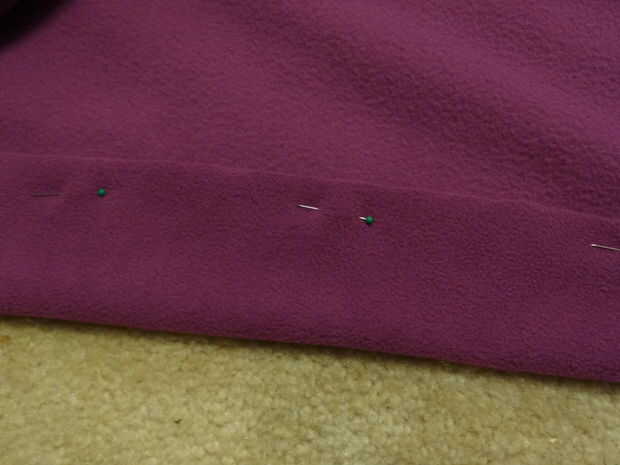 Empecé por fijando el borde inferior de la capa mientras que yo estaba con él. Una vez conseguí unos buenos marcadores de posición en, fui por el resto de la parte inferior y luego cosido alrededor del borde.
