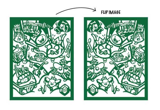 Cuando terminé el diseño, lo último que necesitaba hacer era voltear la imagen, por lo que era al revés. Puesto que el diseño será utilizado como una plantilla y pegado a la parte posterior del papel terciopelo que quiere asegurarse de voltear la imagen es tan caras la dirección correcta en el lado del terciopelo.