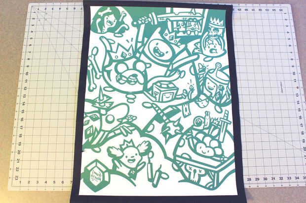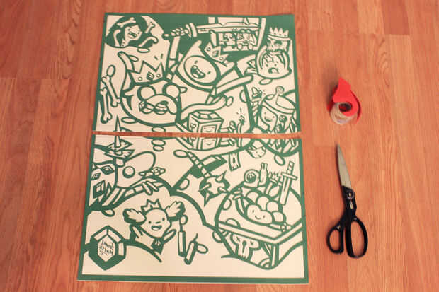 Una vez impresa, desea alinear correctamente ambas hojas y cinta adhesiva. He utilizado una cantidad muy pequeña de la cinta para que no tendría que cortar al cortar el diseño.