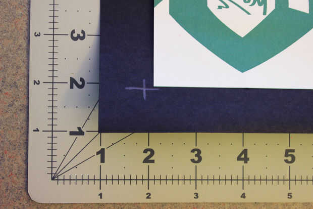 Antes de colocar la plantilla, también he creado registro marcas en la parte posterior del papel terciopelo por lo que supe dónde colocar la plantilla para asegurar que tenía un ancho de borde incluso.