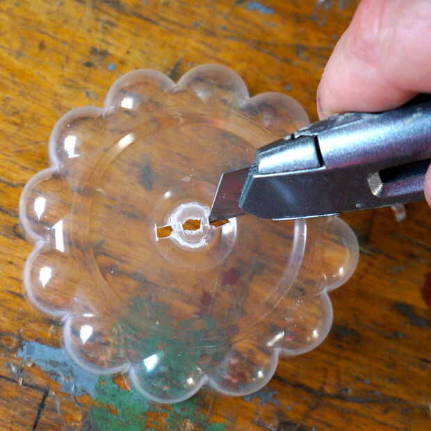 Use un cuchillo de la manía (x-acto o Stanley o algo) para cortar la parte inferior de la Copa. Siempre utilice herramientas afiladas y tenga cuidado de no cortar usted mismo o alguien más.