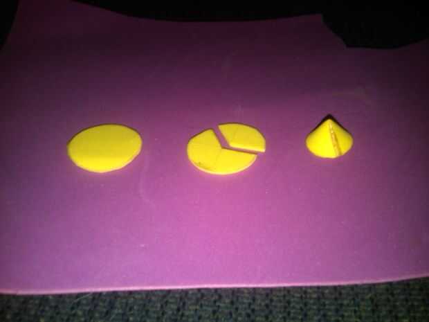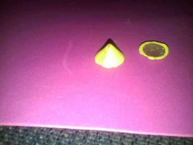 Asegúrese de cortar el cono se puede utilizar un disco de 2mm de espuma. Corte una cuña de 135 grados fuera de él. Unir los bordes. Esto hace que un cono hueco. Rellenar con pegamento caliente. Cortar la parte inferior del cono una vez que el pegamento se seca para llegar a la circunferencia deseada. O utilizar el mismo método que utilizamos para hacer la tuerca.