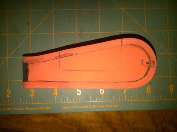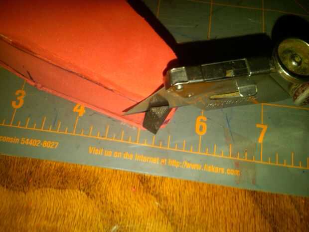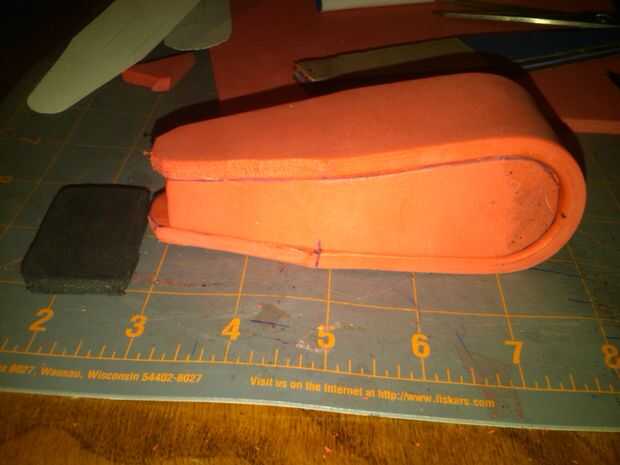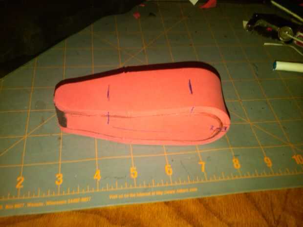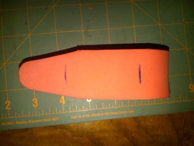 No pegar la parte superior todo el camino durante esta parte. Dejando 2 pulgadas libres de pegamento que podía añadir una pieza personalizada como se ve en las fotos. Es necesario agregar un poco de fuerza a la punta. Una vez que la punta se corta y se pega en pegué abajo las últimas pulgadas 2.