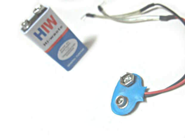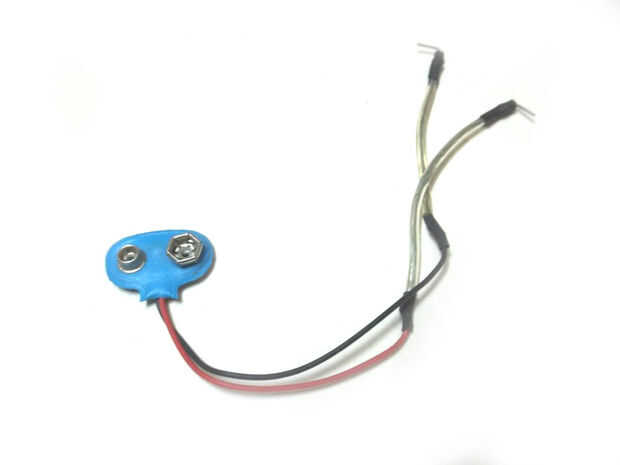 1. soldadura de los pernos de encabezado hombre doblado en los dos cables del cierre de la batería de 9v.