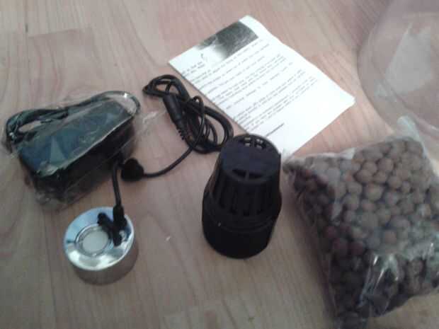 La cada bolsa de bits contenidos8 x 5cm olla de malla guijarros de arcilla 260g adaptador de alimentación de Reino Unido AD/DC 24V 1A Instrucciones y fabricante de la niebla de la aleación de zinc Hoja de instrucciones de Aero-pot