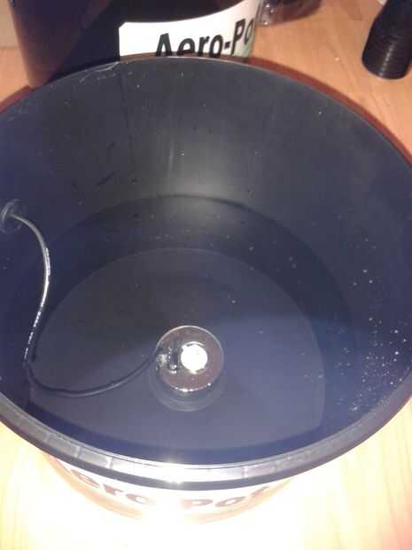 Ahora llené el cubo con unos 2 litros de agua hasta que el fabricante de la niebla tiene 2.5 - 3.5cm de agua por encima de él.