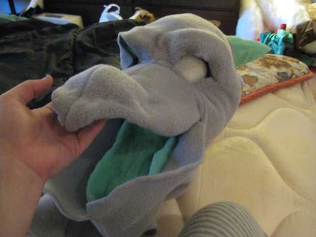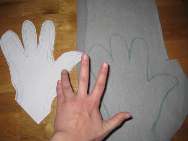 Las manos: Las manos son fundamentales. Rastrear mis manos en un pedazo de papel, dibujaba un contorno alrededor de ellos significativamente mayor (aproximadamente una pulgada alrededor de mi mano) y recórtalo. I había trazado de la plantilla de papel sobre mi tela, había cortado en dos mitades y les cosieron. Prueba de ajuste y darles vuelta adentro hacia fuera. Tuve que hacer las manos 4 veces diferentes hasta que conseguí un buen ajuste-ajustar el patrón cada vez.