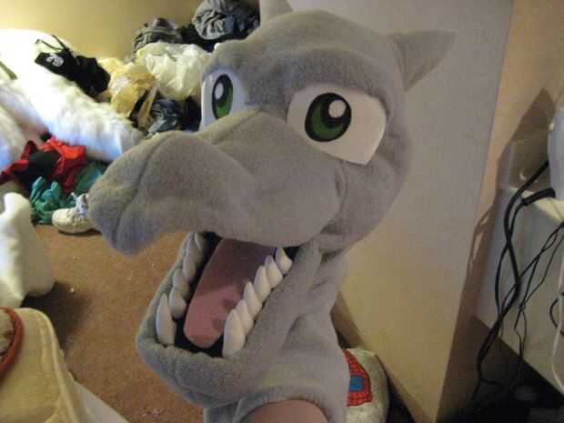 . Recomiendo coser cuando se trabaja con una tela corto o no pelo. El interior de la boca se hizo con vellón pegado en y Crayola mágica de modelo para los dientes.