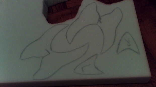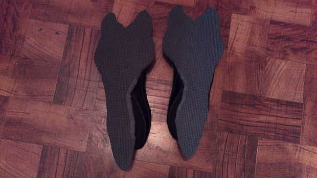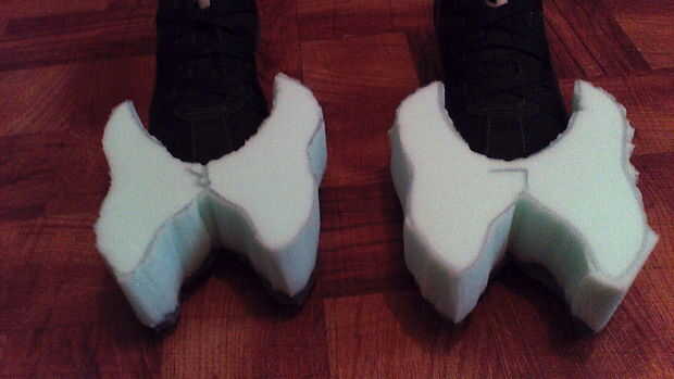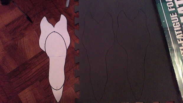El patrón se trazó en la espuma de EVA (o esteras al aire libre). Esto puede adquirirse en las tiendas de la herramienta. Que mina comprado en una tienda llamada Puerto fletes. Fue alrededor de $10 para las cuatro losas. Este material es impermeable y fácil de limpiar a la perfección. No sugiero colocar los zapatos con pegamento caliente (aunque no puedo decirte por qué. No he nunca lo probé). Une los zapatos con cemento cola y deje secar por 24 horas antes de continuar con cualquier trabajo.