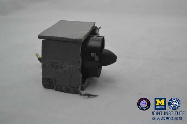 1. pegar el motor cepillado de la parte posterior de la base con pegamento caliente y cinta de goma aislante.