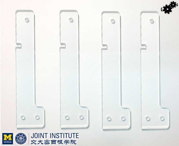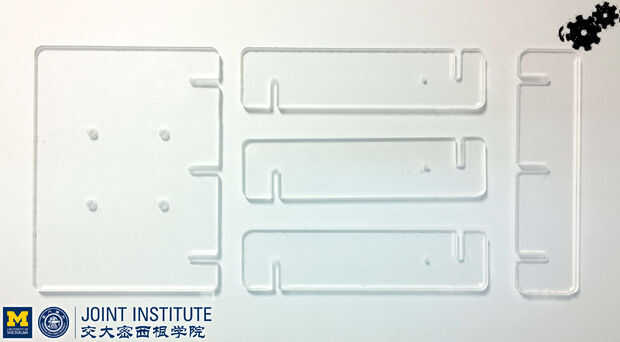 Nota: Las articulaciones de la bayoneta en los componentes para articular unos a otros juntos (vea los pasos 5 y 6), así que asegúrese de que tienen anchura apropiada. Aquí en nuestro caso, ancho de 3mm es adecuada, porque el tablero de acrílico que utilizamos aquí es 3 m m. pequeños agujeros en los componentes son para tornillos.