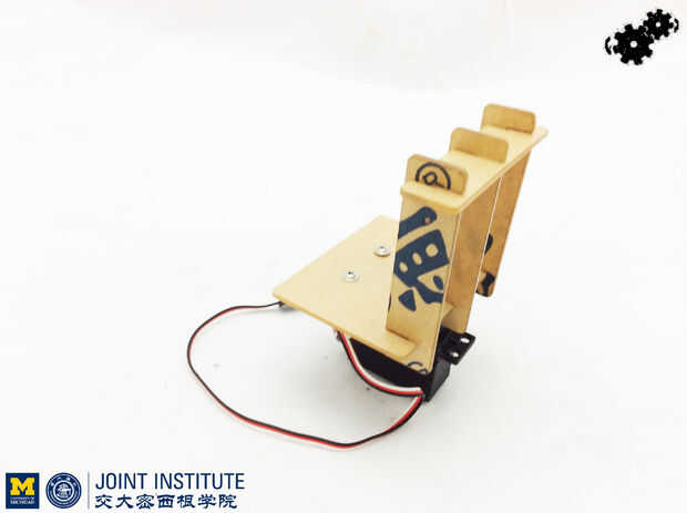 - Fijar el componente transversal (se vende junto con el servo) en el eje de rotación del servo. Asegúrese de que mientras que el servo gira a la mitad, la Cruz es una 'X', no un '+'.