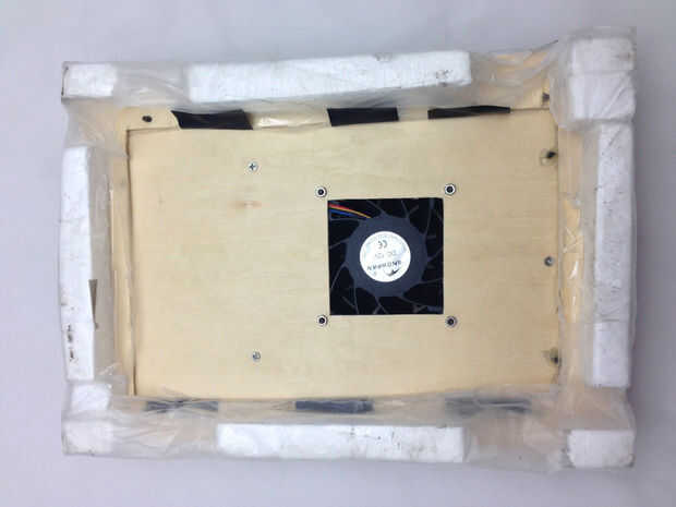 (2) Hacer un orificio cuadrado de 8cmx8cm en medio de la base de un ventilador de ordenador como un levantador. El tamaño del agujero debe ser un poco más pequeño que el ventilador.
