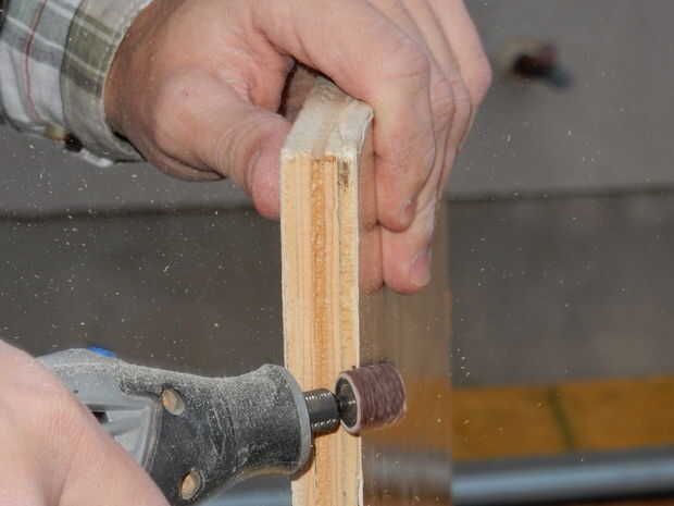Pulir los bordes para que no tengan un borde afilado en los que puedan dañar el plástico cuando lo pones en. Utilizamos un poco de lija en una herramienta Dremel para que no tengamos que utilizar algún papel arena antigua, pero lija hará bien si eso es lo que tienes.