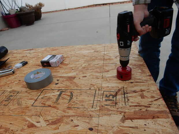Cuadro 10 muestra una capa de cinta de garfio sobre el lado superior de la cinta. Sólo agregamos esto porque pensamos que las grapas se quedaría mejor cuando sujetado con grapa a través de la cinta y la madera contrachapada. Si garfio cinta no está disponible para usted y desea añadir esta capa de la cinta, la cinta sería un bien sustituto. Si no te gusta resultados de cinta del conducto, cinta gorila.